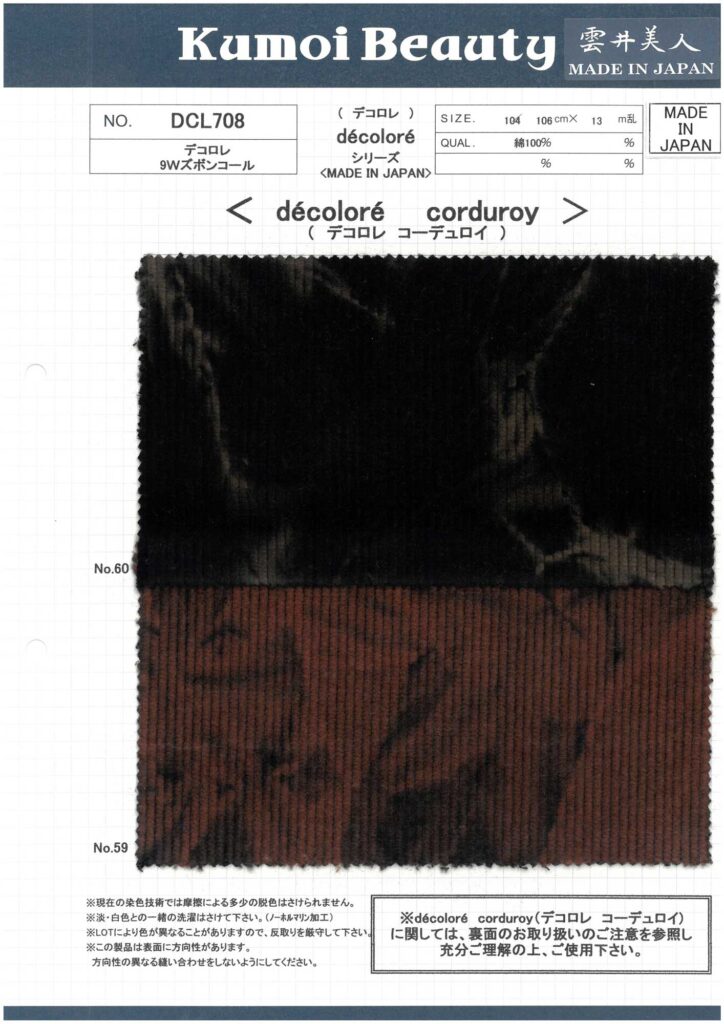 ※特殊加工の為、1反の中でもムラ模様や色の濃淡の出方が異なりますのでご注意下さい。